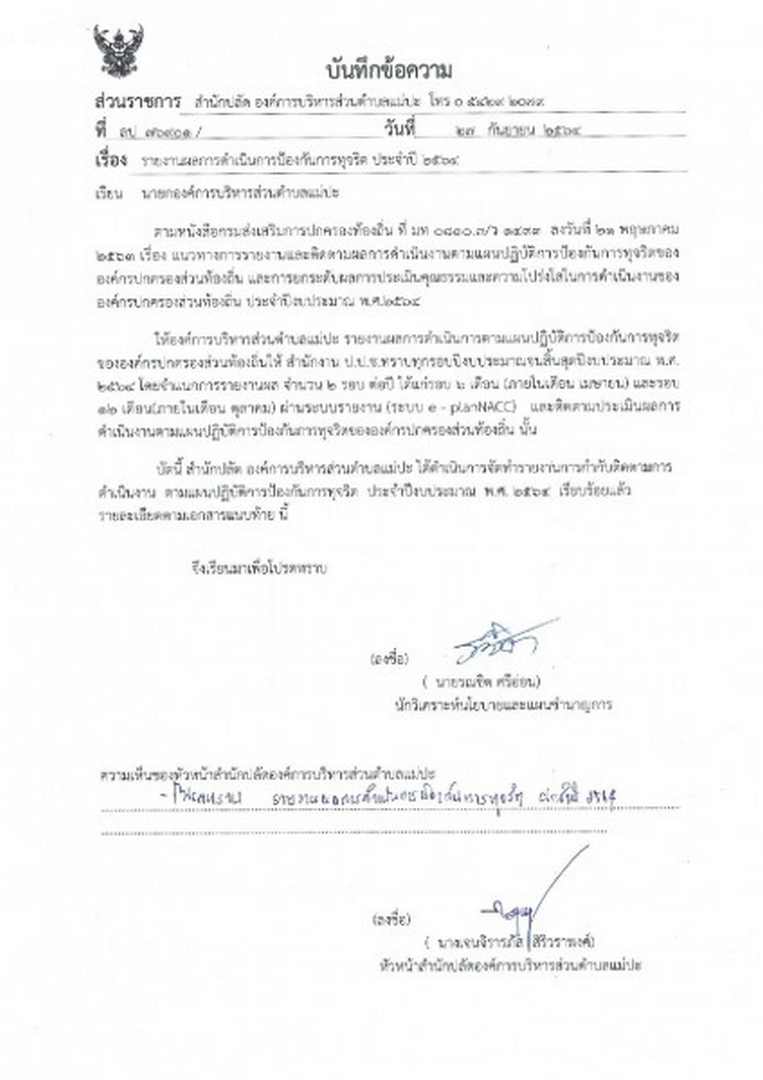 รายงานผลการดำเนินการป้องกันการทุจริต ประจำปี ๒๕๖๔