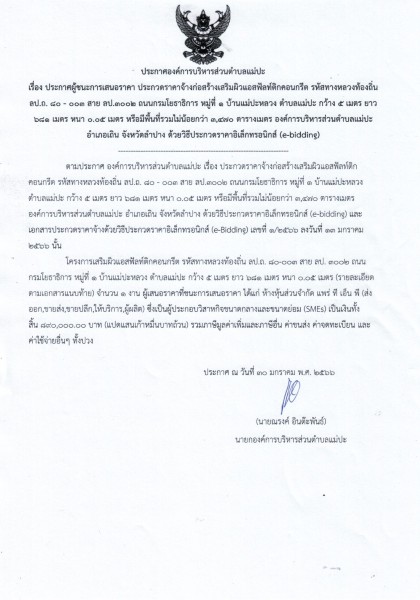 อำเภอเถิน จังหวัดลำปาง ด้วยวิธีประกวดราคาอิเล็กทรอนิกส์ (e-bidding)