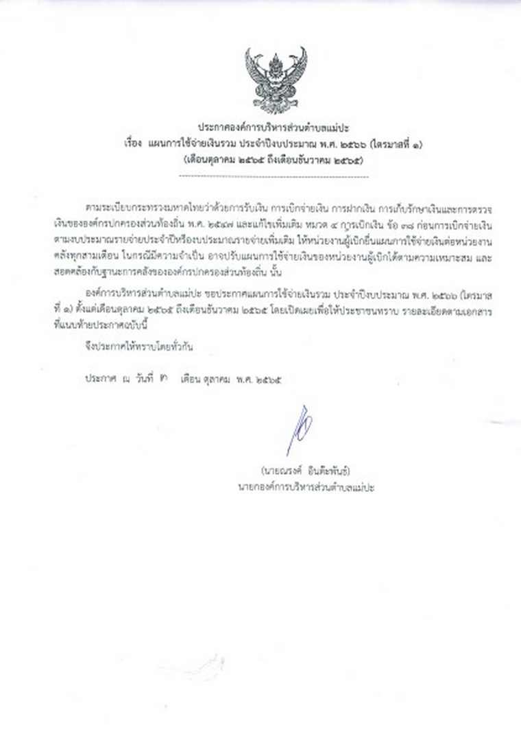 แผนการใช้จ่ายเงินรวม ประจำปีงบประมาณ พ.ศ. ๒๕๖๖ (ไตรมาสที่ ๑) (เดือนตุลาคม ๒๕๖๕ ถึงเดือนธันวาคม ๒๕๖๕)