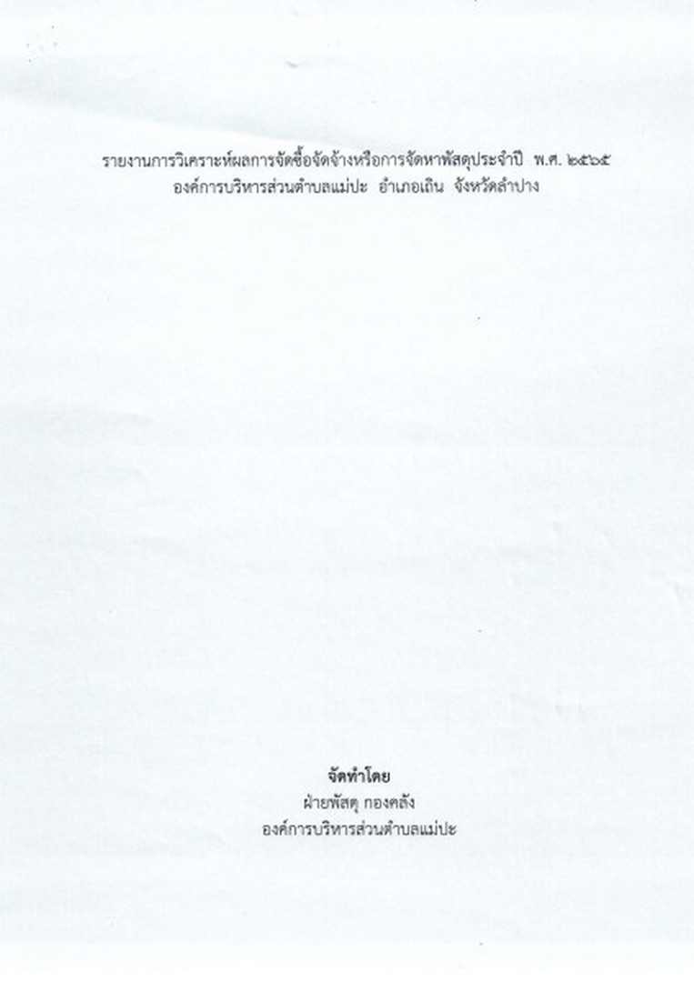 รายงานการวิเคราะห์ผลการจัดซื้อจัดจ้างหรือการจัดหาพัสดุประจำปี พ.ศ. ๒๕๖๕