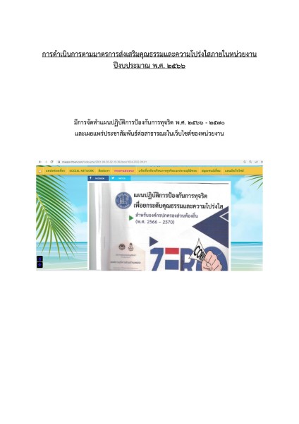 การดำเนินการตามมาตรการส่งเสริมคุณธรรมและความโปร่งใสภายในหน่วยงาน-พ.ศ.2566