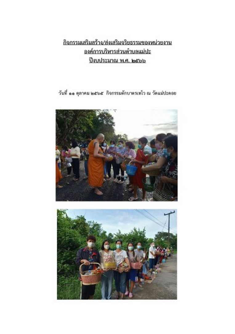 กิจกรรมเสริมสร้าง/ส่งเสริมจริยธรรมของหน่วยงาน องค์การบริหารส่วนตําบลแม่ปะ ปีงบประมาณ พ.ศ. 2566