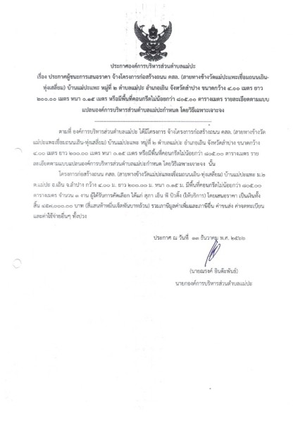 ประกาศผู้ชนะการเสนอราคา วันที่ 26 กันยายน พ.ศ.2566 - วันที่ 27 มีนาคม พ.ศ.2567