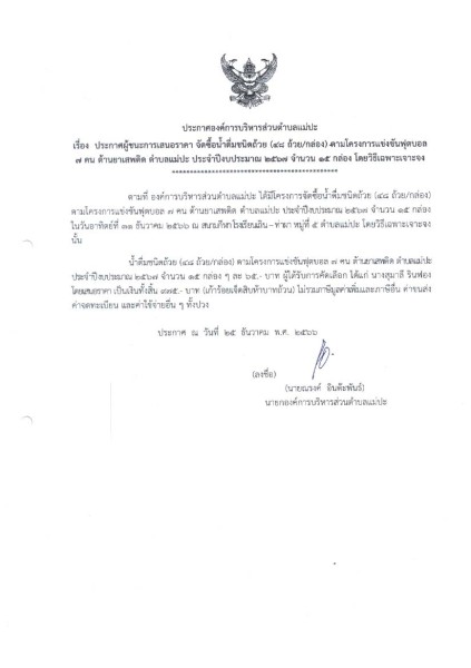 ประกาศผู้ชนะการเสนอราคา ประจำเดือน ธันวาคม พ.ศ.2566