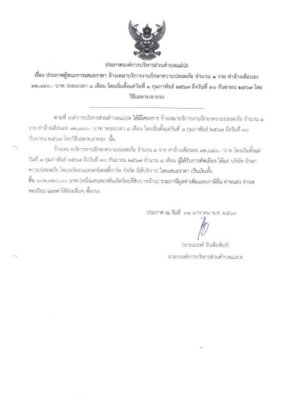ประกาศผู้ชนะการเสนอราคา ประจำเดือน มกราคม พ.ศ.2567