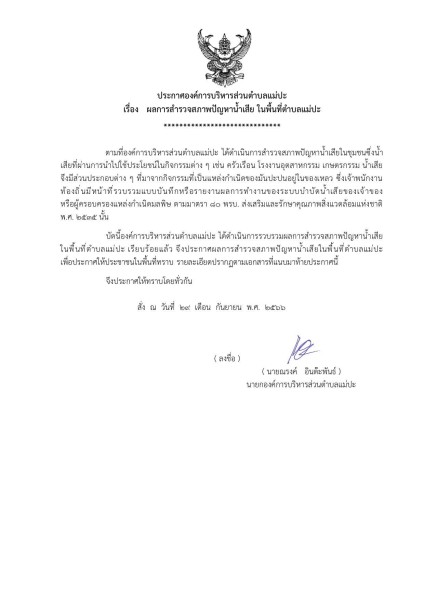 ผลการสำรวจสภาพปัญหานำเสีย ในพื้นที่ตำบลแม่ปะ