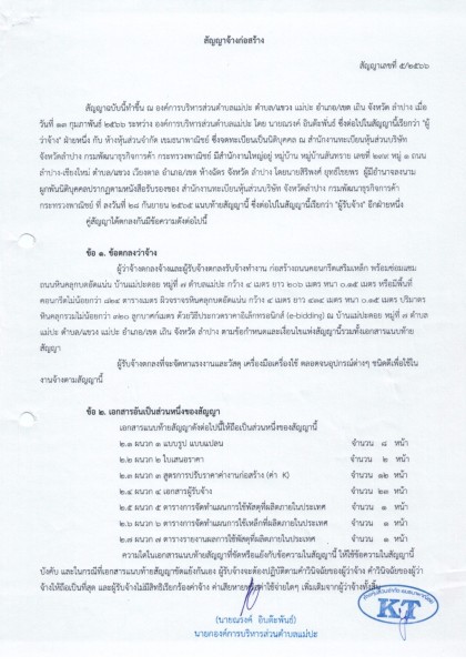 สัญญาจ้างก่อสร้าง สัญญาเลขที่ ๕/๒๕๖๖ ลงวันที่ ๑๓ กุมภาพันธ์ พ.ศ.๒๕๖๖ เรื่อง ผู้ว่าจ้างตกลงจ้างและผู้รับจ้างตกลงรับจ้างทำงาน ก่อสร้างถนนคอนกรีตเสริมเหล็ก พร้อมซ่อมแซมถนนหินคลุกบดอัดแน่น บ้านแม่ปะดอย หมู่ที่ ๗ ฯ โดยวิธีเฉพาะเจาะจง