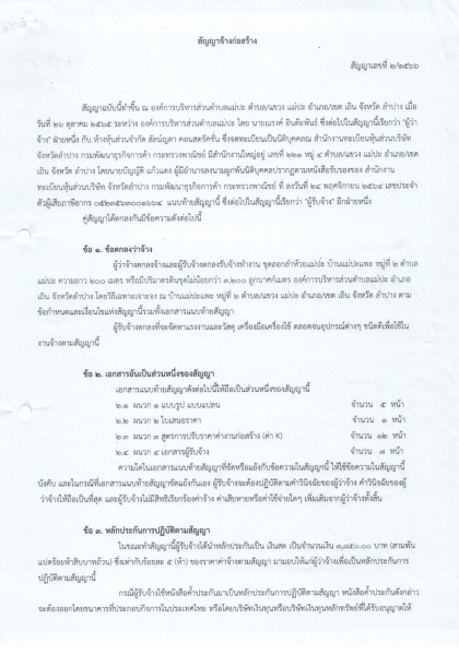 สัญญาจ้างก่อสร้าง สัญญาเลขที่ ๒/๒๕๖๖ ลงวันที่ ๒๖ ตุลาคม พ.ศ.๒๕๖๖ เรื่อง ผู้ว่าจ้างตกลงจ้างและผู้รับจ้างตกลงรับจ้างทำงาน ขุดลอกลำห้วยแม่ปะ บ้านแม่ปะแพะ หมู่ที่ ๒ ตำบลแม่ปะ ฯ โดยวิธีเฉพาะเจาะจง