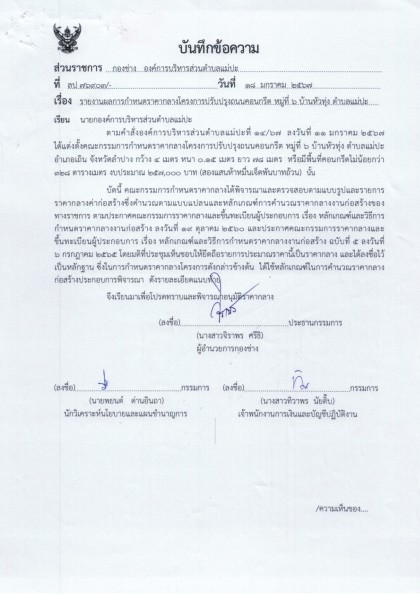 รายงานผลและสรุปราคากลางงานก่อสร้างทาง ปรับปรุงถนนคอนกรีต หมู่ที่ 6 บ้านหัวทุ่ง