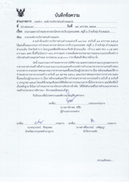 รายงานผลและสรุปราคากลางงานก่อสร้างทาง ปรับปรุงถนน คสล. หมู่ที่ 6 บ้านหัวทุ่ง