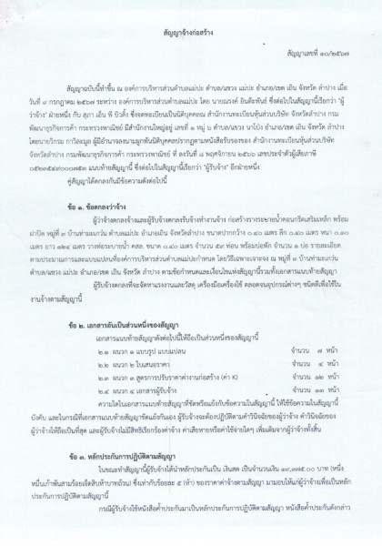สัญญาจ้างก่อสร้าง สัญญาเลขที่ ๑๐/๒๕๖๗ ลงวันที่ ๙ กรกฎาคม พ.ศ.๒๕๖๗ เรื่อง ผู้ว่าจ้างตกลงจ้างและผู้รับจ้างตกลงรับจ้างทำงานจ้าง ก่อสร้างรางระยายน้ำคอนกรีตเสริมเหล็ก พร้อมฝาปิด หมู่ที่ ๓ บ้านท่ามะเกว๋นฯ โดยวิธีเฉพาะเจาะจง