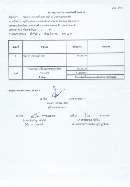 แบบสรุปราคากลางงานก่อสร้างอาคาร ก่อสร้างรางระบายน้ำ คสล. หมู่ที่ 10 บ้านท่ามะเกว๋นเหนือ