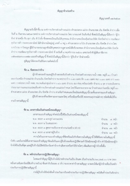 สัญญาจ้างก่อสร้าง สัญญาเลขที่ ๑๒/๒๕๖๗ ลงวันที่ ๒ กันยายน พ.ศ.๒๕๖๗ เรื่อง ผู้ว่าจ้างตกลงจ้างและผู้รับจ้างตกลงรับจ้างทำงานจ้าง ก่อสร้างรางระยายน้ำคอนกรีตเสริมเหล็ก พร้อมฝาปิด หมู่ที่ ๓ บ้านท่ามะเกว๋นฯ โดยวิธีเฉพาะเจาะจง