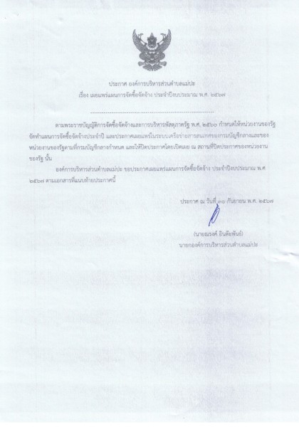 เผยแพร่แผนการจัดซื้อจัดจ้าง ประจำปีงบประมาณ พ.ศ. ๒๕๖๗ (โครงการปรับปรุงสะพาน คสล. หมู่ที่ ๔ บ้านปางกุ่มฯ)