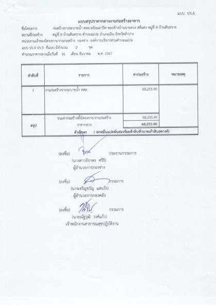 แบบสรุปราคากลางงานก่อสร้างอาคาร โครงการ ก่อสร้างรางระบายน้ำ คสล.พร้อมฝาปิด ซอยข้างบ้านนายดวง สลีแดง หมู่ที่ 8 บ้านสันทราย