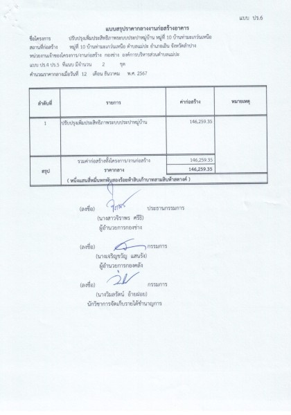 แบบสรุปราคากลางงานก่อสร้างอาคาร โครงการปรับปรุงเพิ่มประสิทธิภาพระบบประปาหมู่บ้าน หมู่ที่ 10 บ้านท่ามะเกว๋นเหนือ
