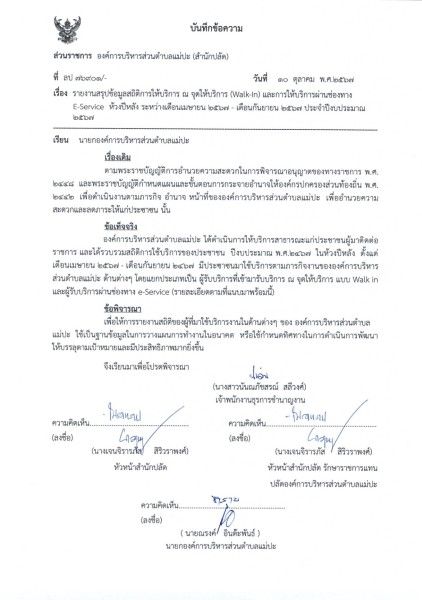 รายงานข้อมูลสถิติการให้บริการประชาชนขององค์การบริหารส่วนตำบลแม่ปะ ประจำปีงบประมาณ พ.ศ. 2567