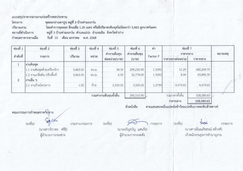 โดยทำการขุดลอก ลึกเฉลี่ย 1.20 เมตร หรือมีปริมาตรดินขุดไม่น้อยกว่า 5,463 ลูกบาศก์เมตร