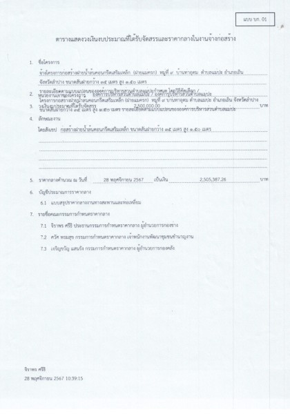 ราคากลางก่อสร้างฝายน้ำล้นคอนกรีตเสริมเหล็ก (ฝายแม่ครก) ม.9 (วิธีคัดเลือก)