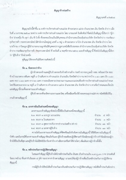 สัญญาจ้างก่อสร้าง สัญญาเลขที่ ๓/๒๕๖๘ ลงวันที่ ๙ มกราคม พ.ศ.๒๕๖๘ เรื่อง ผู้ว่าจ้างตกลงจ้างและผู้รับจ้างตกลงรับจ้างทำงานจ้าง ก่อสร้างรางระบายน้ำ คสล. พร้อมฝาปิด ซอยข้างบ้านนายดวง สลีแดง หมู่ที่ ๘ บ้านสันทรายฯ โดยวิธีเฉพาะเจาะจง
