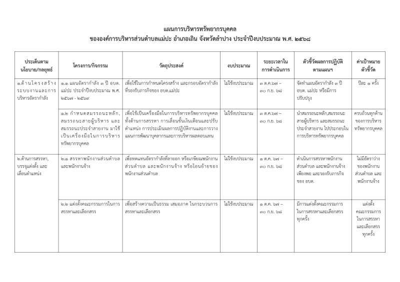 แผนการบริหารทรัพยากรบุคคล ประจำปี พ.ศ. 2568