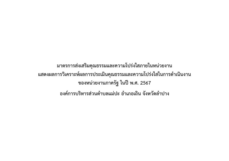 มาตรการส่งเสริมคุณธรรมและความโปร่งใสภายในหน่วยงาน แสดงการวิเคราะห์ผลการประเมินคุณธรรมและความโปร่งใสในการดำเนินงาน ของหน่วยงานภาครัฐ ในปี พ.ศ. 2567