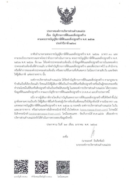 บัญชีรายการที่ดินและสิ่งปลูกสร้างตามพระราชบัญญัติภาษีที่ดินและสิ่งปลูกสร้าง พ.ศ. ๒๕๖๒ ประจำปีภาษี ๒๕๖๘