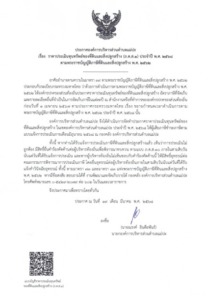 ราคาประเมินทุนทรัพย์ของที่ดินและสิ่งปลูกสร้าง (ภ.ด.ส.๑) ประจำปี พ.ศ. ๒๕๖๘ ตามพระราชบัญญัติภาษีที่ดินและสิ่งปลูกสร้าง พ.ศ. ๒๕๖๒