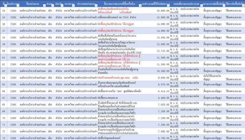 รายการการจัดซื้อจัดจ้างหรือการจัดหาพัสดุ และความก้าวหน้าการจัดซื้อจัดจ้างหรือการจัดหาพัสดุ ประจำปี พ.ศ. 2568