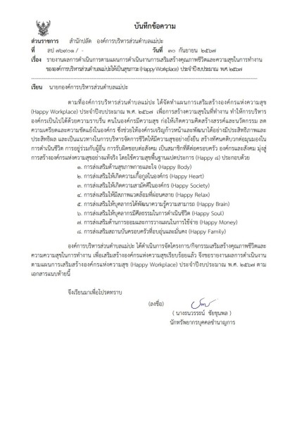 รายงานผลการส่งเสริมและบริหารจัดการองค์กรปกครองส่วนท้องถิ่นให้เป็นองค์กรสุขภาวะ (Happy Workplace) ประจำปี 2567