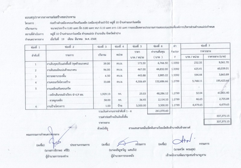 แบบสรุปราคากลางงานก่อสร้างชลประทาน โครงการ ก่อสร้างลำเหมืองคอนกรีตเสริมเหล็ก (เหมืองทุ่งห้วยป่าไร่) หมู่ที่ ๑๐ บ้านท่ามะเกวันเหนือ