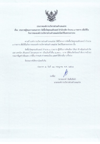 ประกาศผู้ชนะการเสนอราคา ประจำเดือน กรกฎาคม พ.ศ.๒๕๖๘