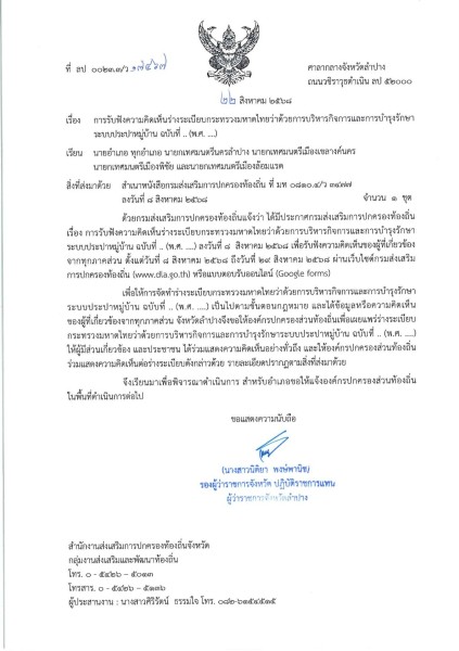ประกาศกรมส่งเสริมการปกครองท้องถิ่น เรื่อง การรับฟังความคิดเห็นร่างระเบียบกระทรวงมหาดไทยว่าด้วยการบริหารกิจการและการบำรุงรักษาประปาหมู่บ้าน
