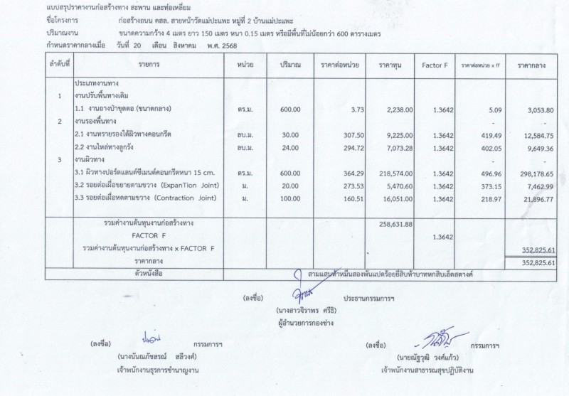 แบบสรุปราคางานก่อสร้างทาง สะพาน และท่อเหลี่ยม โครงการก่อสร้างถนน คสล. สายหน้าวัดแม่ปะแพะ หมู่ที่ 2 บ้านแม่ปะแพะ
