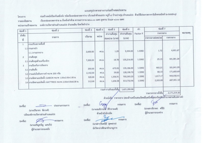 ราคากลางก่อสร้างพนังป้องกันตลิ่งพัง ชนิดเรียงกล่องลวดตาข่าย บริเวณลำห้วยแม่ปะ ม.4 (เงินอุดหนุน เหลือจ่าย)