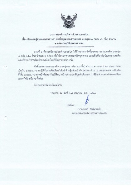 ประกาศผู้ชนะการเสนอราคา ประจำเดือน สิงหาคม พ.ศ.๒๕๖๘