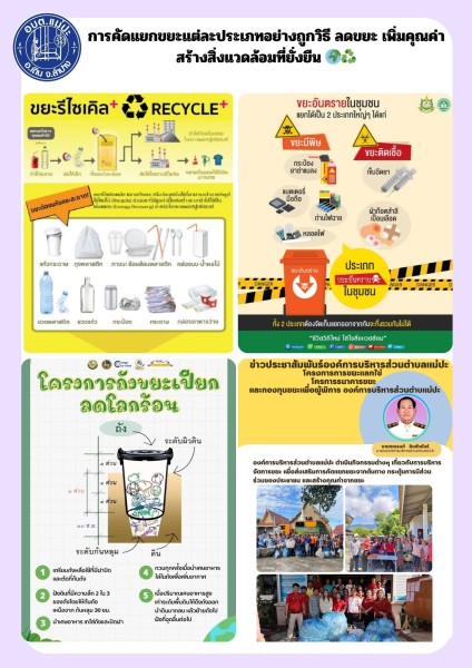 องค์การบริหารส่วนตำบลแม่ปะขอเชิญชวนพี่น้องประชาชนทุกคนร่วมกันคัดแยกขยะอย่างถูกวิธี เพื่อสร้างสิ่งแวดล้อมที่ดีในวันนี้ และส่งต่อความยั่งยืนสู่คนรุ่นต่อไป 🌍🌱