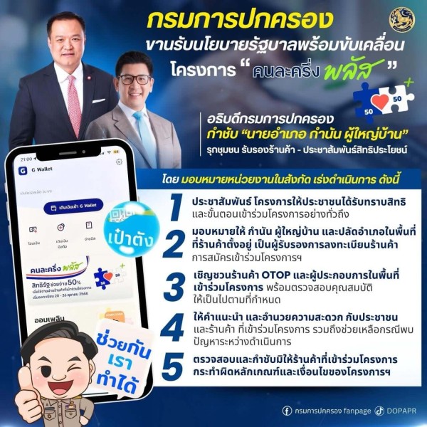 🟡 ประชาสัมพันธ์ โครงการ “คนละครึ่ง พลัส” ปี 2568