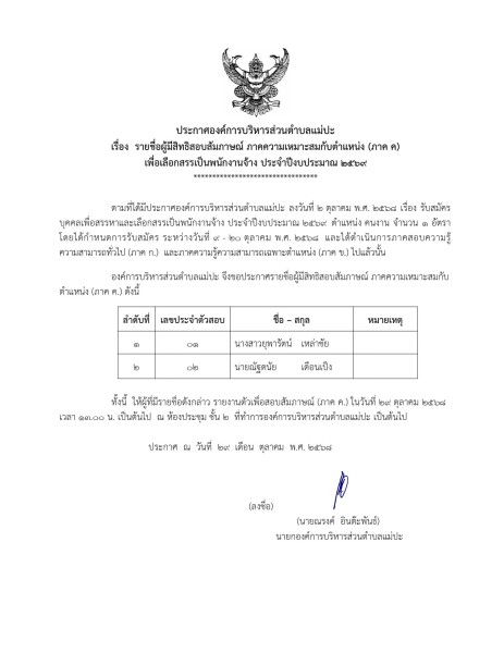 รายชื่อผู้มีสิทธิสอบสัมภาษณ์ ภาคความเหมาะสมกับตำแหน่ง (ภาค ค) เพื่อเลือกสรรเป็นพนักงานจ้าง ประจำปีงบประมาณ ๒๕๖๙