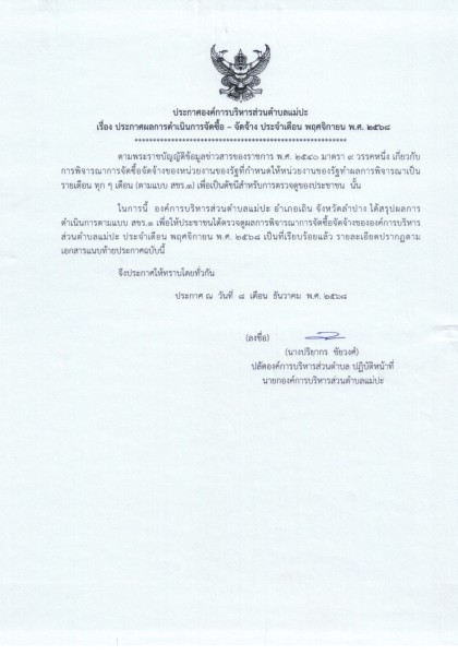 ✨ ประกาศผลการดำเนินการจัดซื้อ - จัดจ้าง ประจำเดือน พฤศจิกายน พ.ศ. ๒๕๖๘