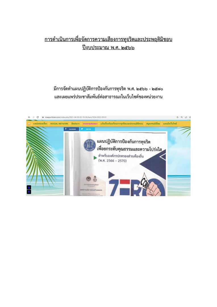 การดำเนินการเพื่อจัดการความเสี่ยงการทุจริตและประพฤติมิชอบ-2566