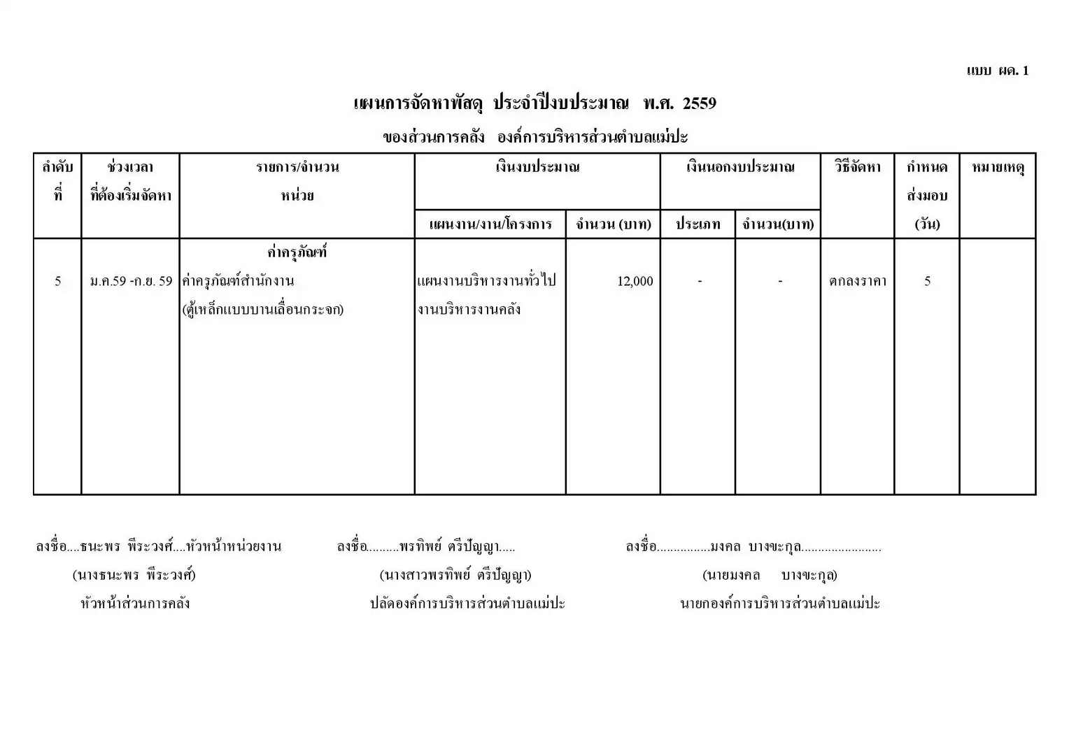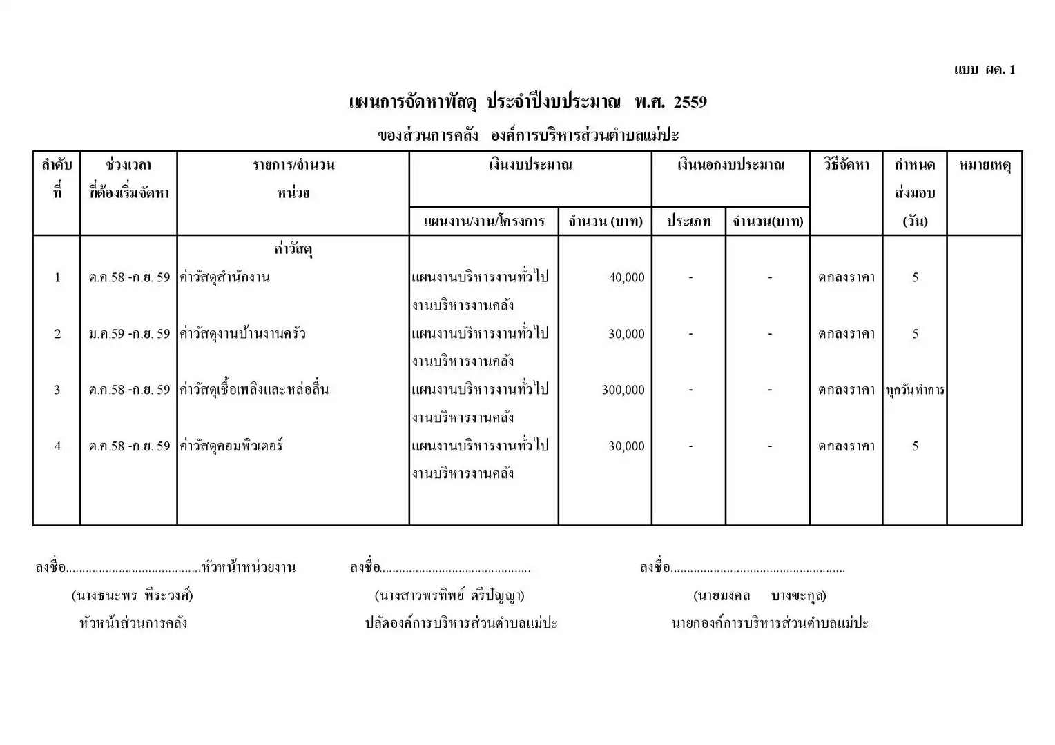 ส่วนการคลัง - แบบ ผด. 2. อบต. ปี 59 ผด.1