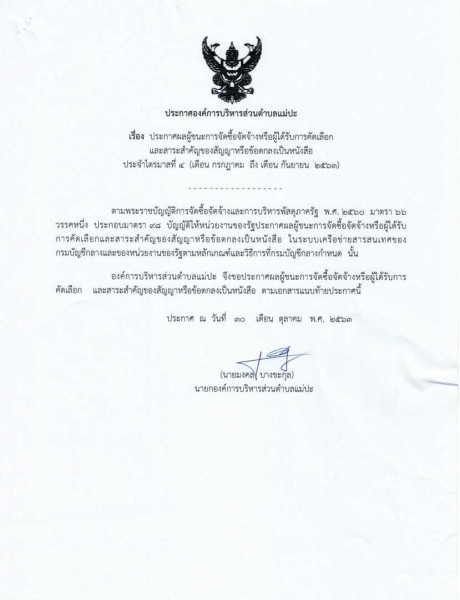 เรื่อง ประกาศผลผู้ชนะการจัดซื้อจัดจ้างหรือผู้ได้รับการคัดเลือก และสาระสําคัญของสัญญาหรือข้อตกลงเป็นหนังสือ ประจําไตรมาสที่ ๔ (เดือน กรกฎาคม ถึง เดือน กันยายน ๒๕๖๓)