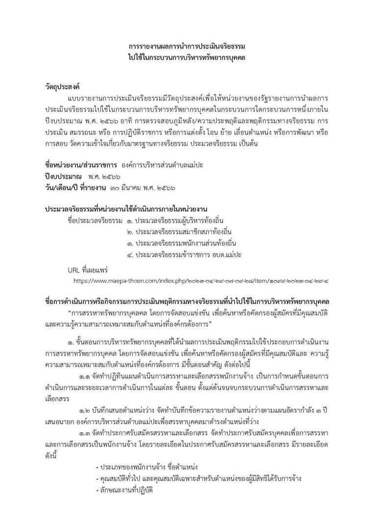 การรายงานผลการนำการประเมินจริยธรรม ไปใช่ในกระบวนการบริหารทรัพยากรบุคคล